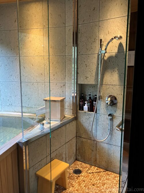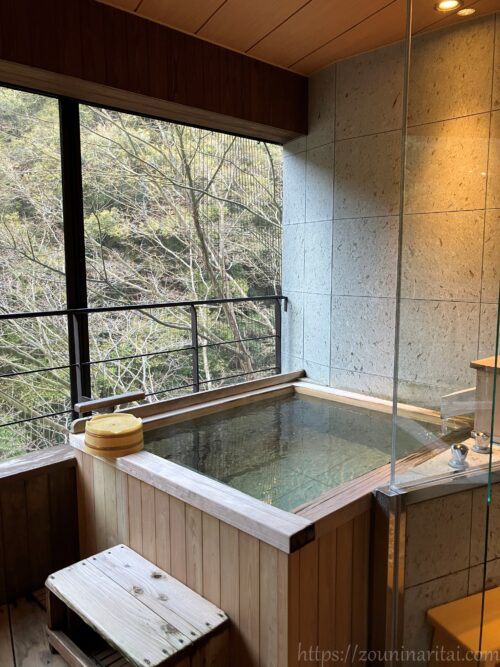それから外気が入ってくるので花粉を心配していましたが、目の前に杉がなかったのかここでは大丈夫でした。以前杉が目の前にある客室の露天風呂に入ってくしゃみしっぱなしということもあったので…。
