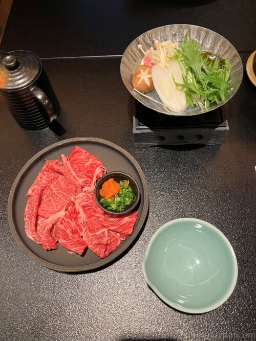黒毛和牛については、しゃぶしゃぶ・すき焼き・ステーキから選ぶことができました。こちらはしゃぶしゃぶです。