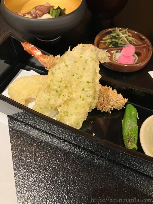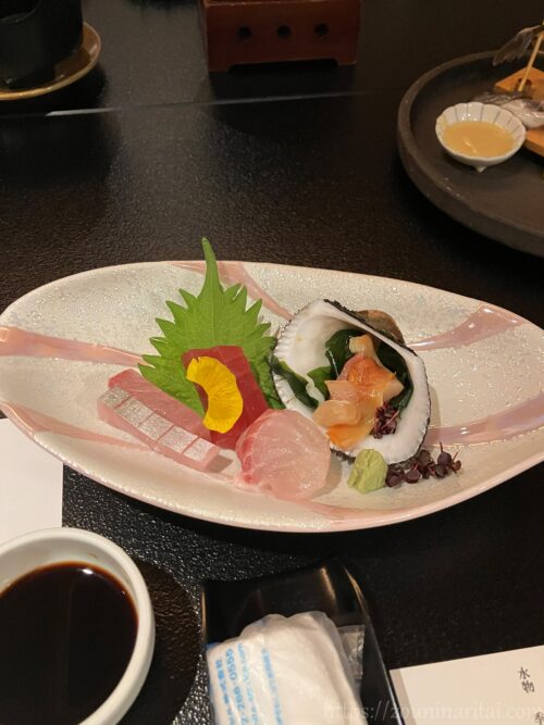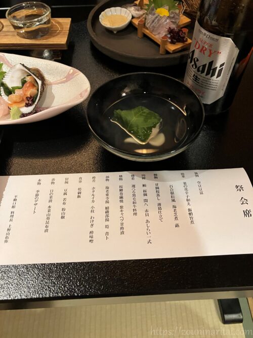 「祭会席」の量はお腹いっぱいになりすぎないくらいでした。ただお酒も飲んだのでもっと量の少ない「美味少量会席」でもいいかもしれません。お酒も入れると今回の量は、私にはやや多い感じでした。