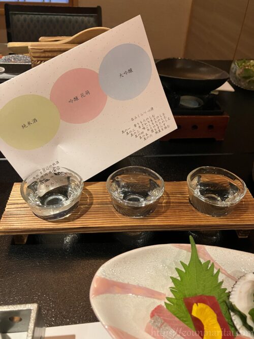 飲み比べの他に瓶ビールまで頼んでしまい…結構酔いましたが、お部屋での食事なのでその点はかなり楽でした。