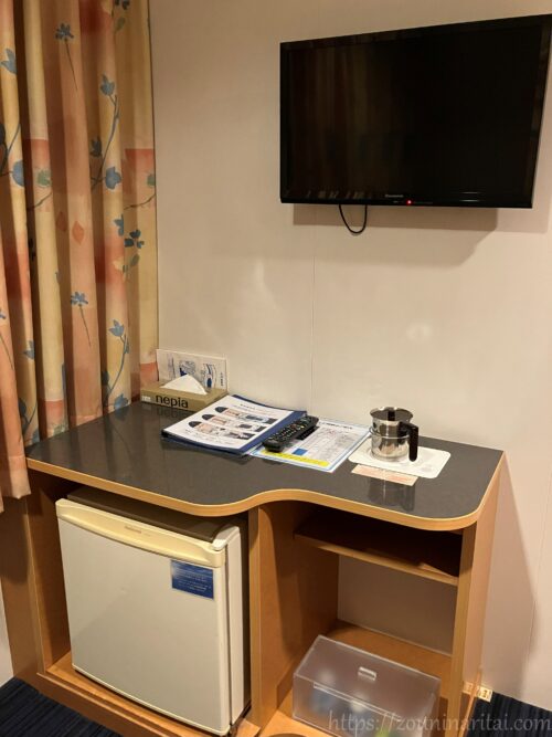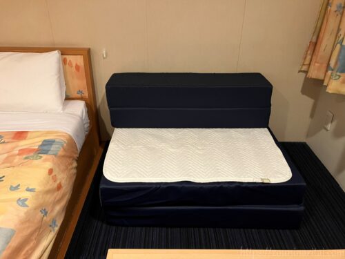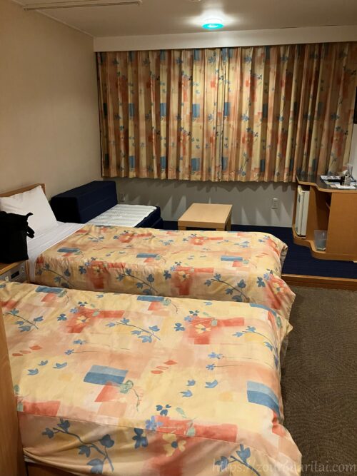 太平洋フェリーでは、「客室利用人数が個室の定員の半数に満たない場合は利用できない」という決まりがあるので(貸切料金を払っても不可)、私が一人で利用する際には必然的に定員2名の洋室しか利用できません。