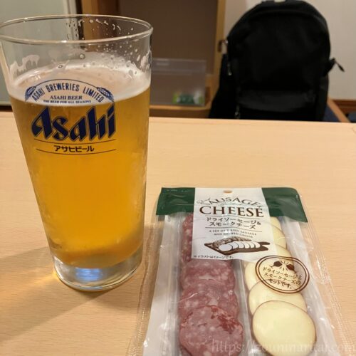 いつもそうしていますが、1日目の夜は外で買ってきたものを食べています。個室利用で冷蔵庫があれば翌日朝くらいまでもつものを購入することもありますが、夜の分だけ用意することが多いです。