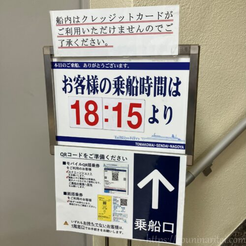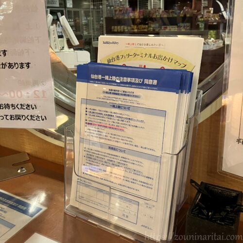 仙台港フェリーターミナルのいつもの案内です。ここから乗船することがこの先あるのだろうか…と思いながら再乗船しました。いや、多分ありそうな気がする。その時はまたお世話になります。