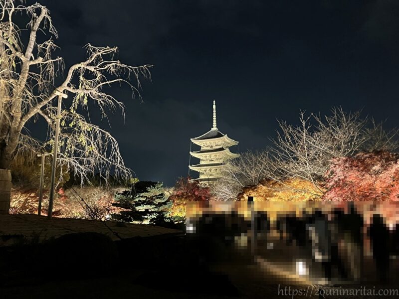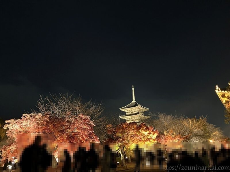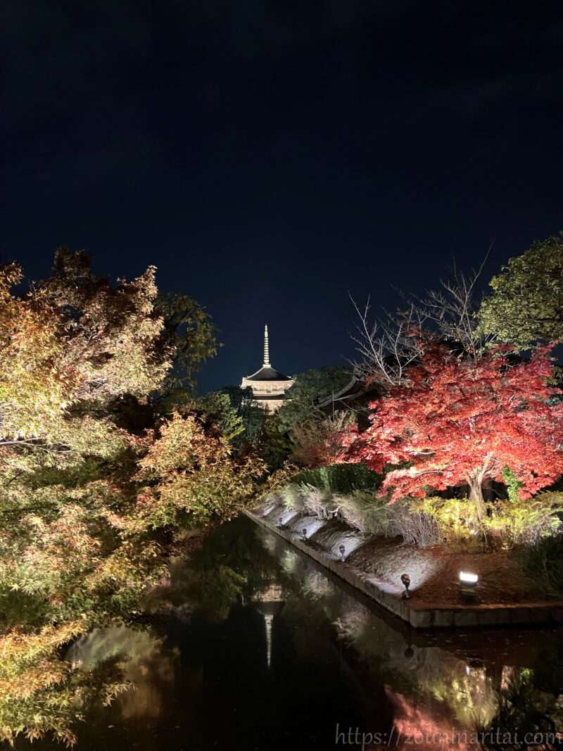 私は12月に入ってすぐに行きました。紅葉はもうそろそろ色あせて散り始めていますが、ライトアップしている境内はとても幻想的で、紅葉が終わった後でも十分素敵な体験ができると思います。